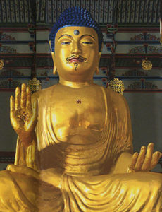 752年 4月9日 黄金色に輝く奈良の大仏は完成した。大仏の目の中に黒い炭を書き込む大仏開眼供養会が行われた