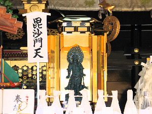 そこには七副神の4つ目の神様でもあるインドから来た兵隊さんの格好をした毘沙(びしゃ)門天が祀られてました。