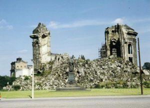 その教会は第2次世界大戦のときの連合国軍(アメリカやフランスなどの国)の空爆により粉々になるまで破壊されてしまいました。