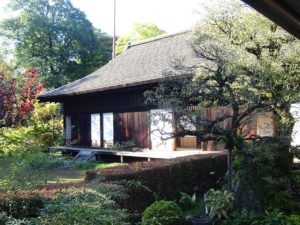 さてそんな庭園の奥に遥々遠くからそのままの形で移されて来た手品のような建物がありました。それが白い壁と黒い瓦屋根が特徴の江戸時代のお屋敷でした。
