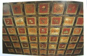 天井に四角く区切らて格子(こうし)の中に四季折々の草花の絵が描かれてました。