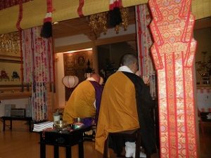 そして そんな真っ暗闇の中 年季の入った僧侶が不気味すぎるくらい静かにお経を読み上げます。その光景はまるでお通夜のようでした。