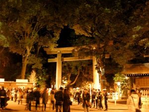 さて こちらは東京の明治神宮の様子です。この神社は年間と初詣(はつもうで)の参拝者数が日本一だそうです。そして 今年の大晦日も大勢の人が参拝に来てました。