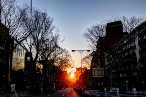 その参道と太陽が一直線上に並んだ光景は まるでその参道を真っすぐ進むと太陽に たどり着けるようにも見えました。