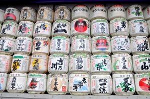 しばらく歩くと参道の両端(左右)に酒樽(さかだる)で出来た高い壁が見えて来ました。それにしてもかなりの量の清酒(日本酒)(でした。それらは全て神に捧(ささ)げるためのお酒でした。