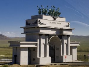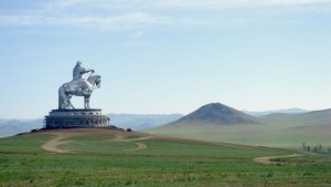 ツォンジン・ボルド グ (ウランバートルから約55キロ) 銀色のチンギスハーン騎馬像 13世紀のモンゴル大帝国を再現