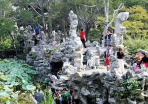 〇獅子林 太湖の湖底の石をふんだんに使った庭園 660年前 元の時代に作られた 奇岩の多い庭園 14世紀半ば元の時代 岩のトンネル