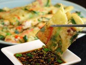 タイの生カキを使ったもんじゃのようなお好み焼きもおいしいです。そしてなんといっても僕の一番の好物は韓国のチジミです。