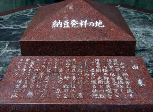 ありました 赤いピラミットのような石碑が確かにそこには〃納豆発祥の地〃という文字が刻まれていました。