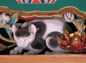 そのとき神社の柱の上では眠さを こらえきれずについに眠り込んでしまった猫がいました。その猫は〃眠り猫〃と言う有名な猫だそうです。