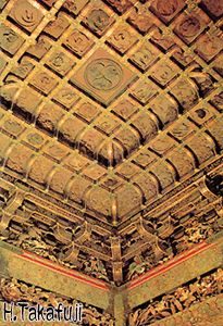 その部屋を拝殿と言うそうです。そしてそこは神聖な雰囲気に包まれ何となく肌寒く感じました。さらに上から人々を見下ろすのは天井に描かれた無数の龍でした。