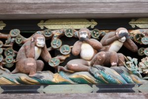 その動物の向かいには馬小屋がありそこには見てはいけない物を見てしまったと慌てて目をふさぐ猿と口をふさぐ猿そして耳をふさぐ猿がいました。