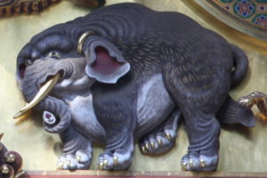 なんでそんなイノシシのような象になってしまったのかと言うと当時 日本で象をまだ見た人がいなかったからだそうです。まさにその彫刻は想像で彫り上げた想像の象でした。