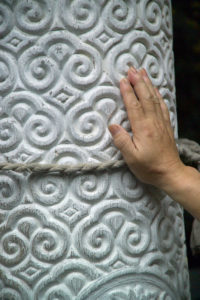 さらにその柱には魔除け効果があり〃魔除けの逆柱〃と呼ばれているそうです。わかりにくいですが一本だけ柱の ぐるぐるの模様が逆さになっているのがその柱です。