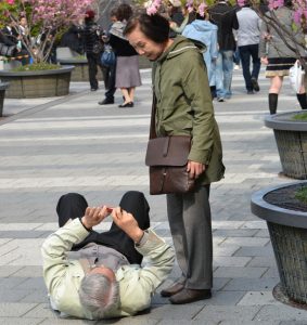 さらに戦地に来たかのような〃ほふく前進〃(這いつくばりながら前に進む)人まで現れました。しかし彼らの手には全員カメラを持ってました。