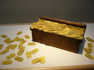 しばらくするとするとその巨大ムカデの両目が真っ赤に光り なんとムカデの口からザックザックと黄金小判が出てきました。