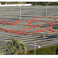 それは駐車場のスタッフが赤い三角コーンを なんと750個も使い広い駐車場に描いたミッキーの顔でした。3人のスタッフが2時間もかけて作り上げた大作となります。
