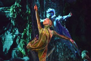 さらにそこには多くの奇怪な生物が楽し気に踊ってました。そして数人の緑のタイツを着たバレリーナが滝のシャワーをくぐり抜け踊りながらの登場でした。
