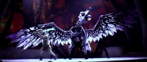 すると真っ暗だったステージに大きな流れ星が現れ一気に明るくなりました。そして次の瞬間 先程のカラスが人の形となって登場して来ました。彼の名前はビューと言います。