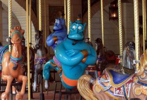 そこには馬だけでなくゾウやラクダ さらには大魔神ジーニーまでゆっくりと上下しながら前に進みます。もちろんそれらの動物の背中に乗って楽しむことが出来ます。
