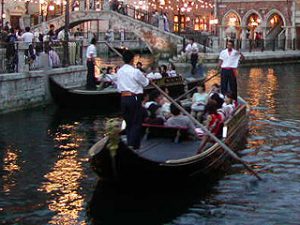 なんとその男はそのまま川岸に浮かんだ長細い船(ゴンドラ)へと乗り込みました。そうですそのアトラクションはイタリアのヴェネツィアンゴンドラでした。
