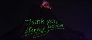 そこで〃星に願いを〃の曲と共に火山の山肌に大きなミッキーの姿が映し出されました。そしてそこには〃今まで長い間 応援ありがとう〃の感謝の文字(英文)がありました。