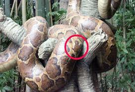 そして木の枝にはニョキニョキした大きなニシキヘビがぶら下がってました。