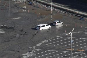 そしてそのとき東京ディズニーランドの駐車場でも液状化現象が発生していました。そこに停めてあった車は まるで沈没しかけた船のように ぬかるんだ地面の中に沈み込んでいました。