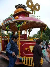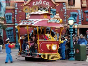 東京ディズニーランドのトゥーンタウンに着くとまず最初に来客を出迎えてくれるのが大きな かごのような形をしたトロリーバスです。