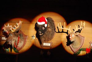 お馴染みのクリスマスソング〃真っ赤なお鼻のトナカイさんは~♪〃と歌っていたのは壁から頭と首が突き出たトナカイでした。