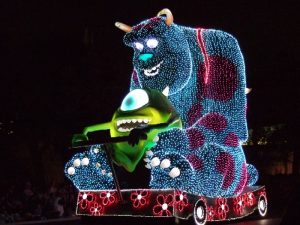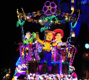 そして男の子のおもちゃ箱をひっくり返したような電飾パレードカーがやって来ました。そこにはトイストーリーのメンバーたちが乗ってまいた。