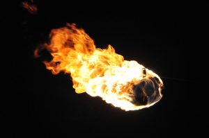 そしてピッチャーが振りかぶって最初の一球を放ったすると勢いよく宙を舞うのは なんと800度に燃えた赤い鉄でした。