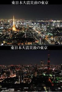 さらに震災後に起こった原発事故により東北関東地方で極度の電力不足に見舞われます。もちろん東京タワーライトアップもしばらくの間 中止となりました。