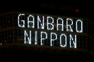 そこにはローマ字GANBARO NIPPON(がんばろうニッポン)と言う文字でうっすらと白くってました。その光は なんとあの東京タワー展望台から発せられてました。