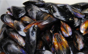 ムール貝の殻を洗い 中を開き赤いところを取り除く