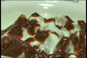 水ギョーザにトマトとよーぐロトのソースをたっぷりとかける
