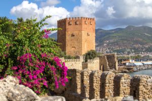 アランヤ城と同時期に築かれた港に建つ巨大な八角形の塔