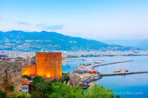 1226年 セルジューク朝(中央アジア系民族)スルタンにより築かれた海辺の城 海岸沿いには長さ8キロの城壁が築かれた。