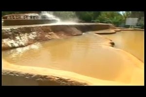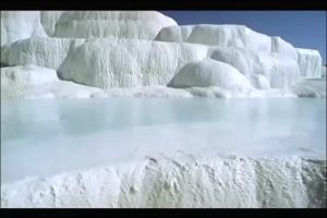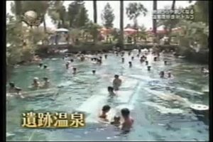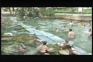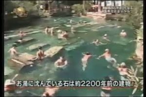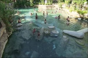 崩壊した町の上に水がたまり今では温泉遺跡として多くの入浴客が訪れる