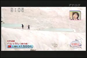 遠くから見ると標高1000メートルのところに一か所だけ白く見えるところがパムッカレ