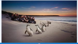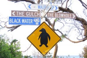 メルボルンからは80~100キロ 本土からは400メートルのところにある 砂浜には5センチほどのペンギンの足跡が残っている