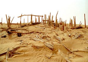 175位(新)ニヤ遺跡(尼雅遺址)(中国ウイグル)〇中心部に高さ6メートルの仏塔が立っているラワーク寺院跡 4世紀頃 川の流れが西にずれたためニヤ(町)は放棄された